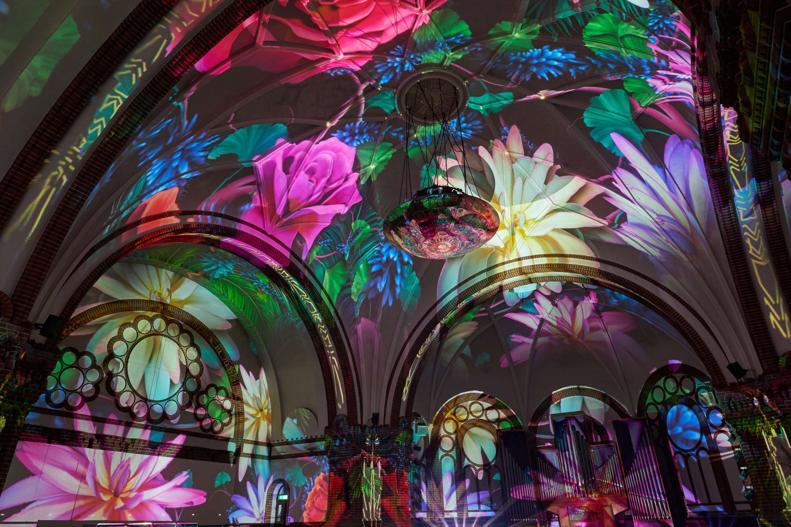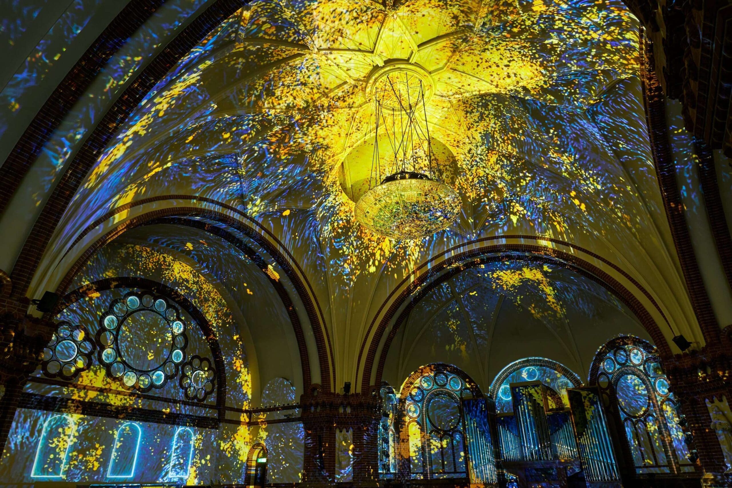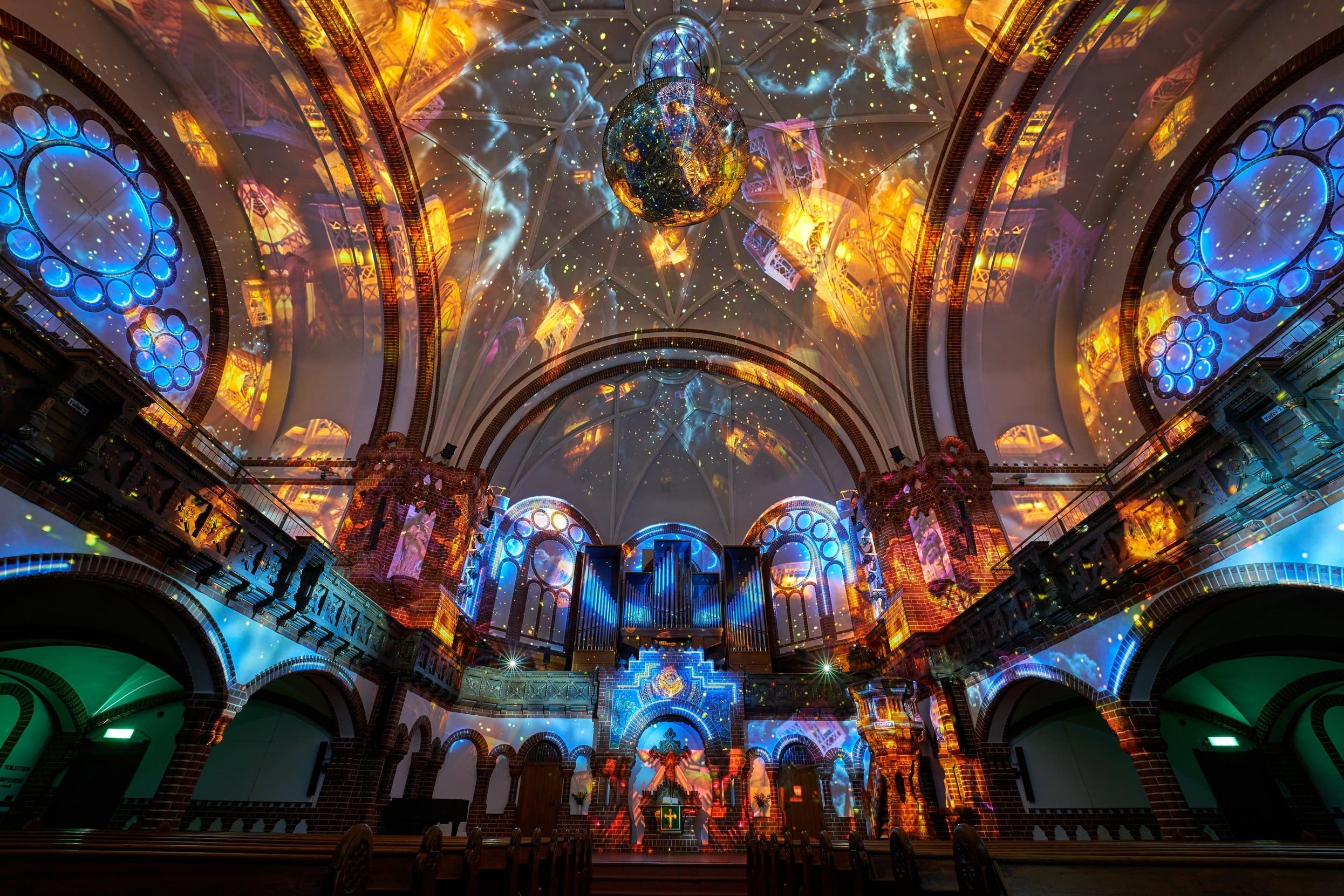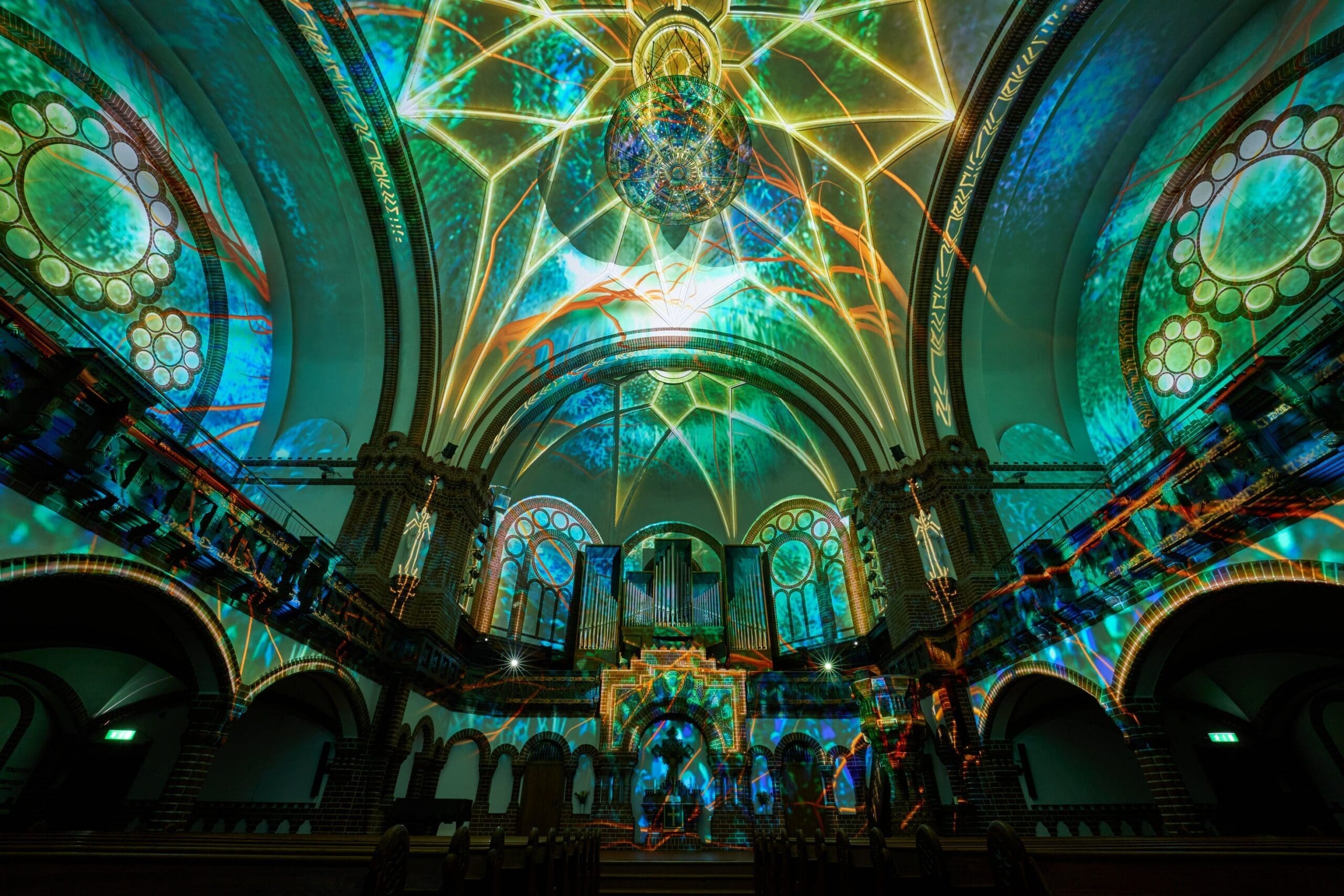 Erlebe den zweiten Teil der Schöpfungsgeschichte – von der Erschaffung von Sonne, Mond und Sterne, Tieren und den Menschen – hautnah mit. Dank unseres Werks GENESIS und dessen Verwendung von mehreren Hochleistungsprojektoren verwandelt sich die historische Passionskirche in eine atemberaubende Kulisse, in der Du die Geschichte der Genesis bei einer audiovisuellen und immersiven Lichtshow beobachten kannst, wie nie zuvor.